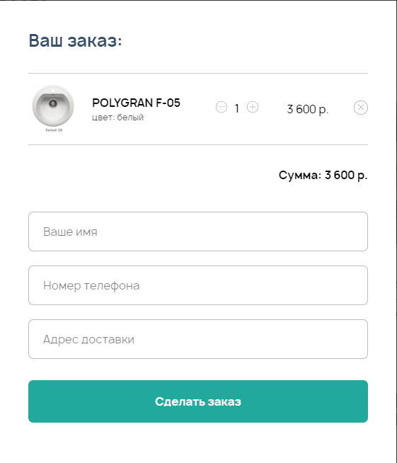 3. Проверьте правильность заказа, введите, имя, телефон и адрес доставки, нажмите "Сделать заказ"